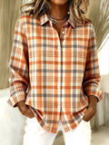 Women's Long-sleeved Lapel Plaid Button Shirt Top